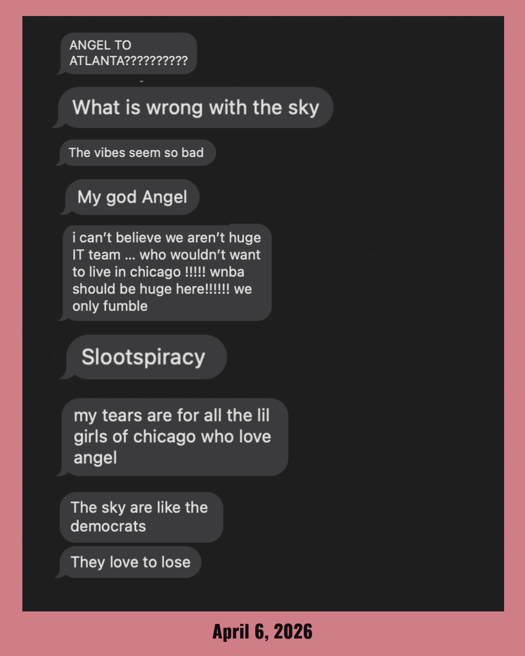 Yesterday, Angel Reese’s trade was announced — to the Atlanta Dream, from the Chicago Sky. For many Reese’s Pieces (Angel’s fans), and perhaps for Angel herself, leaving Chicago is a kind of liberation — she ended last season publicly frustrated with the infamously lackluster franchise. But for many fans in Chicago, her leaving carries an extra layer, more baggage: the scalping awareness of what we once held as naked hope. And I am still in my feelings about it.