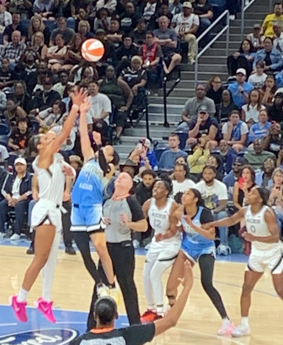 That season was also what inspired me to start Rough Notes — and in my fairly unhinged writing (the whole idea of this newsletter/blog was to be a space for the rough, the experimental, the still-taking-shape), I reveled in the arrival of Angel, our young leader, who dove into the fray of every play like a warrior. On June 23rd, she led the Sky to an 88-87 comeback victory over the Indiana Fever. I wrote this: